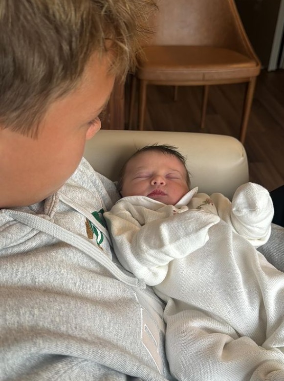 O jogador compartilhou registros do dia do parto, com direito a uma foto sua assistindo ao nascimento, ao lado do seu primogênito, Davi Lucca. Ele também filmou o rostinho da criança dormindo. Nos comentários, o atleta do Al-Hilal recebeu felicitações pela bebê.