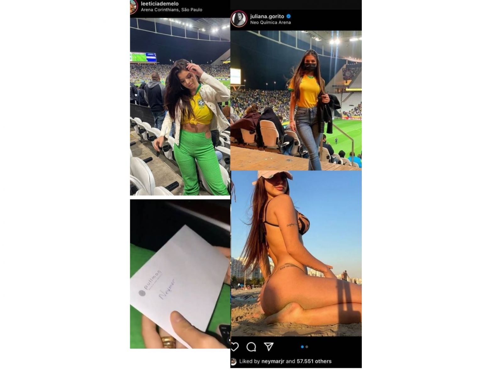 Outro detalhe é que ele convidou beldades para assistir o jogo da seleção brasileira contra a Colômbia, na última quinta-feira, e lá também estava Bruna Biancardi e o pai do atleta.