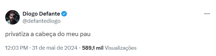 Ao que parece, Neymar se irritou com um comentário feito por Defante na rede social X, antigo Twitter, sobre a polêmica envolvendo o jogador sobre a privatização das praias. “Privatiza a cabeça do meu pa*”.