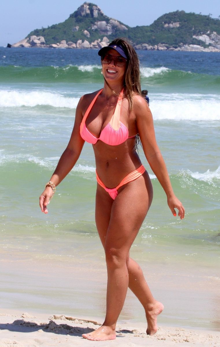 Nicole Bahls tirou o dia para curtir uma praia com os amigos e aproveitou para colocar em dia o seu bronze. Da 'cor do pecado', a musa do "Pânico! na Band" usou um fio-dental para se refrescar na Praia da Barra da Tijuca, no Rio de Janeiro.