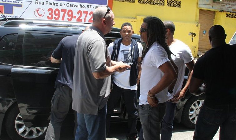 Com o Carnaval acontecendo, os turistas vão chegando, e entre eles, algumas celebridades americanas. Neste domingo (10), o ator Will Smith (dos filmes ' MIB - Homens de Preto ' e ' Hitch - Conselheiro Amoroso ') visitou o Vidigal, no Rio de Janeiro, com o casal formado pela estrela de reality shows Kim Kardashian , e pelo rapper Kanye West .