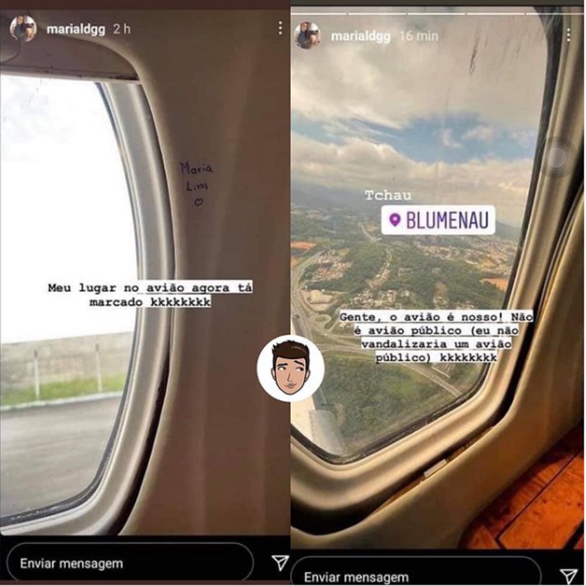 “Gente, o avião é nosso! Não é avião público (eu não vandalizaria um avião público) kkkkkk”.