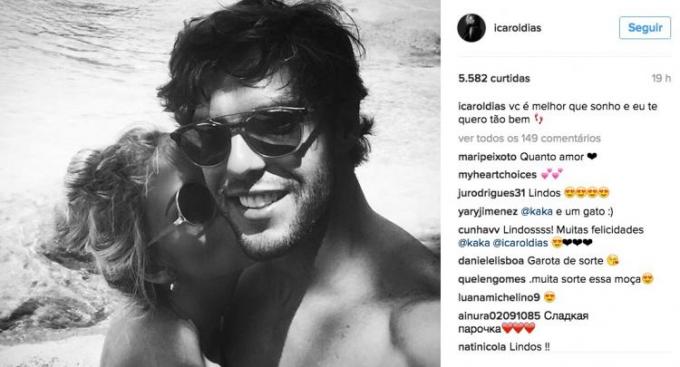 Depois de assumir o namoro com Carolina Dias no réveillon, Kaká recebeu uma declaração apaixonada da modelo.