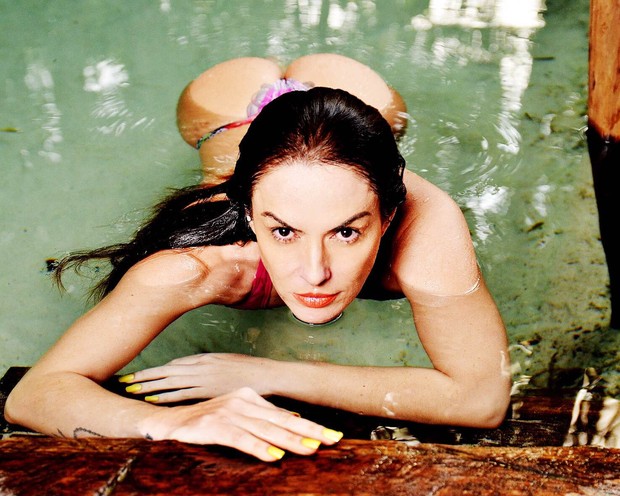 Núbia Oliiver posou só de biquíni fio-dental e mostrou seu corpaço aos 41 anos, desbancando muitas jovens de 20. A modelo fez um ensaio sensual e contou que para manter toda sua boa forma, ela malha no mínimo cinco vezes por semana. "Só falto se minha agenda de trabalho interferir. Também cuido muito da minha alimentação e quando enfio o pé na jaca tenho o programa Detox da nutrição sob medida que elimina o lixo que coloquei pra dentro."