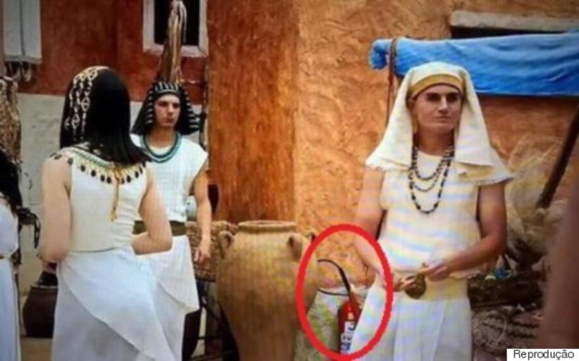 Um extintor de incêndio apareceu em uma cena da novela Os Dez Mandamentos, da Record, durante uma cena com Meketre (Luciano Szafir) e Tais (Babi Xavier).