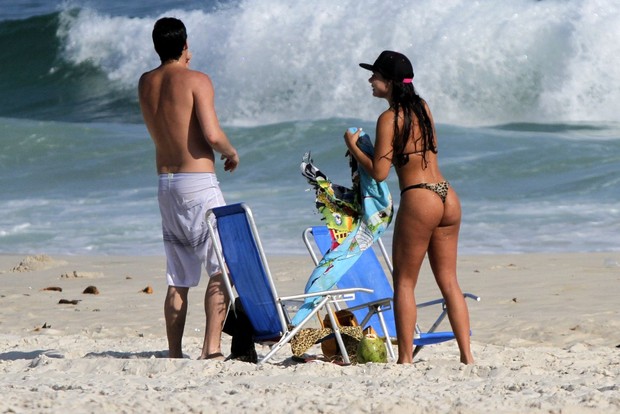 A morena exibiu o corpão sarado em um micro biquíni de oncinha.