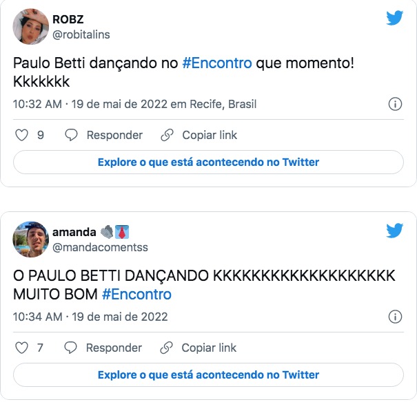 “Sabe tudo, olha isso!”, disse o cantor Márcio Victor. Assim que parou de dançar, o ator brincou: “Chama o Samu”.