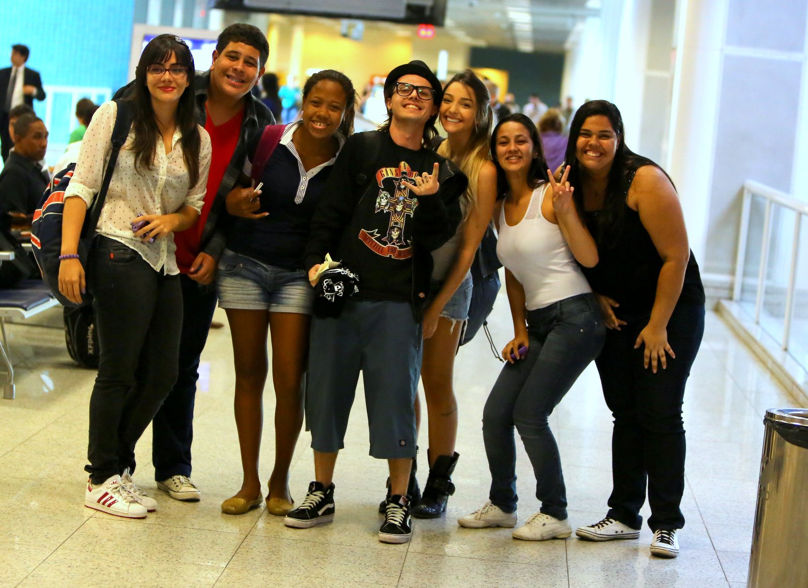Cercado por garotas, Pe Lanza desembarcou no aeroporto do Rio de Janeiro, na noite desta quarta-feira, 22.
