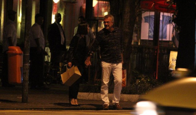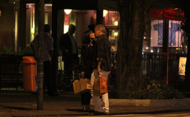 O casal estava em um restaurante e não percebeu a presença do paparazzo. Eles trocaram carinhos e deixaram o local de mãos dadas.
