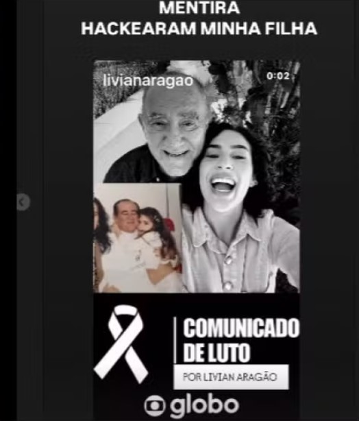 SÃO PAULO, SP (FOLHAPRESS) - A atriz Lívian Aragão tem sido criticada nas redes sociais após publicar um "comunicado de luto" com a imagem de Renato Aragão para poder fazer marketing. Os pais da atriz informaram que a conta foi hakeada.