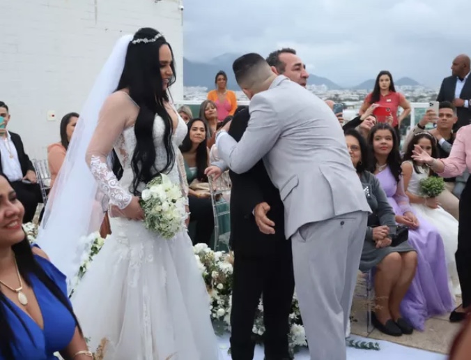 O pai do noivo, o apóstolo Inovélio Abrahão, foi quem celebrou a cerimônia. Os noivos optaram por realizar a festa em julho, em Dubai, onde o casal mantém negócios.