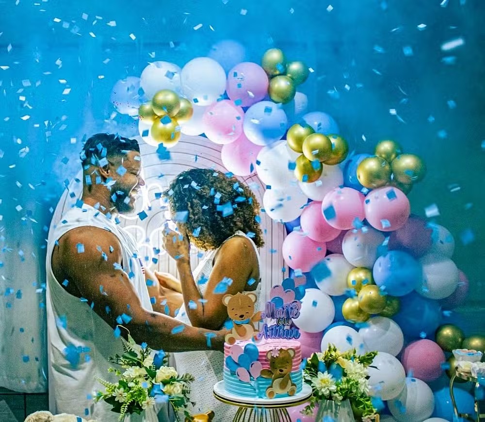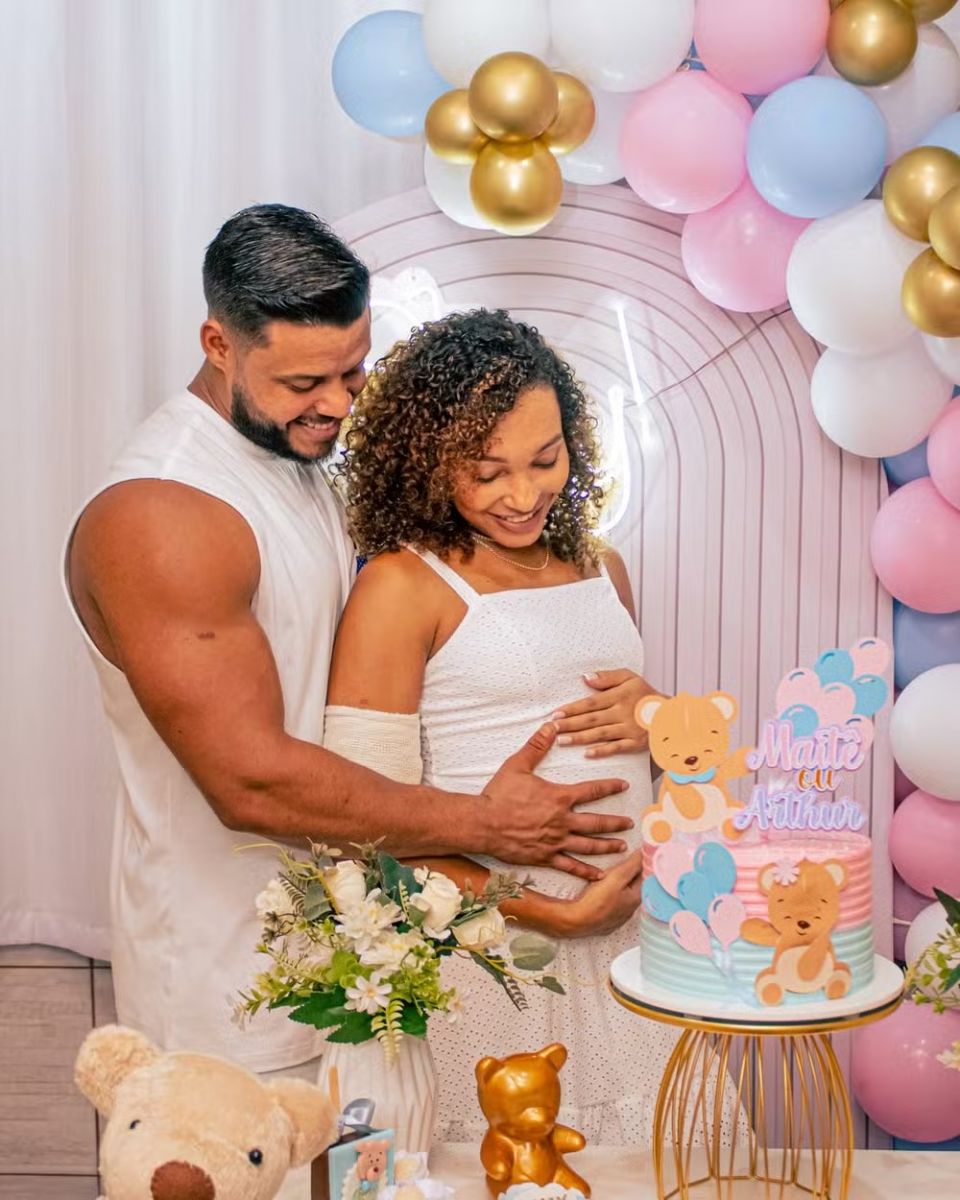 Hugo Tisk, o personal trainer da influenciadora Gracyanne Barbosa, compartilhou ontem (24) em suas redes sociais, fotos e vídeos do chá revelação do bebê que espera com a esposa, Alessandra Santos. Nas imagens, entregam que é um menino e vai se chamar Arthur.