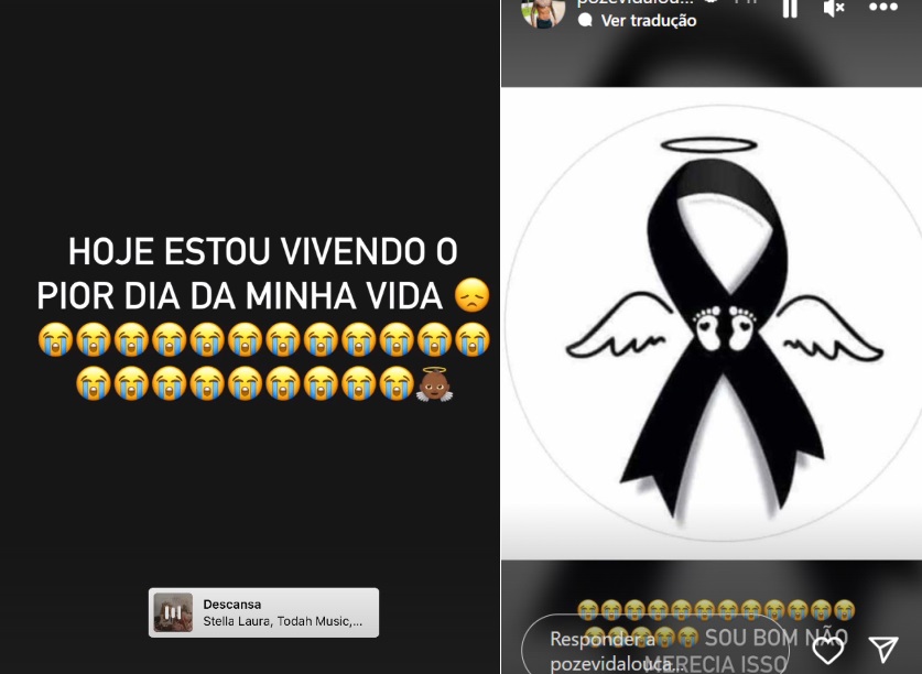 Em seguida, o funkeiro publicou a imagem de uma fita preta, símbolo do luto, com asas de anjo e pezinhos pequenos. "Sou bom, não merecia isso", acrescentou.