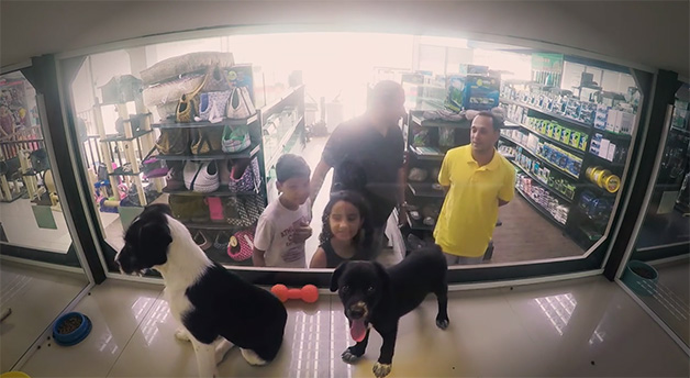 Com ajuda de câmeras escondidas, registraram a reação e surpresa das pessoas ao serem informadas que os animais que elas haviam se apaixonado na vitrine, poderiam ser levados pra casa de forma gratuita, sem precisar os valores (bem altos aliás) que os animais são vendidos por lá.