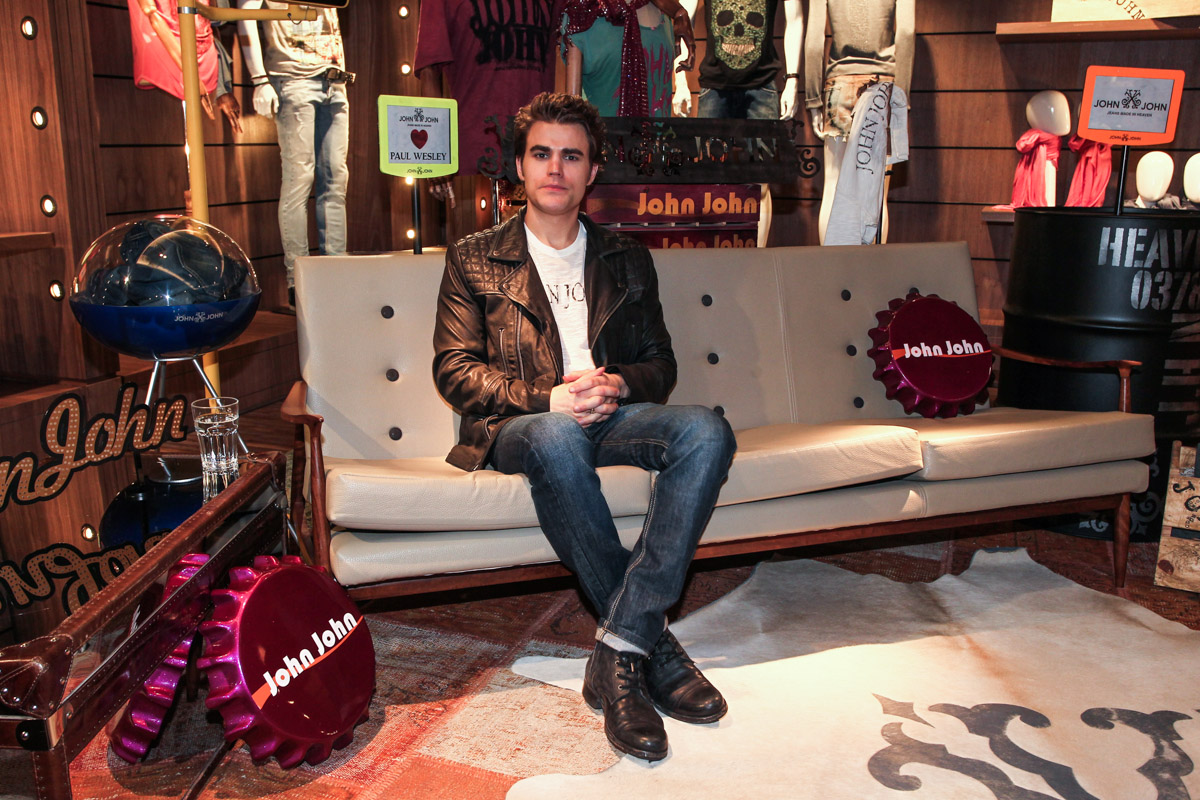 Após receber os atores Zac Efron, Ian Sommerhalder e Lindsay Lohan no Brasil, a marca John John Denim trouxe o ator americano Paul Wesley a São Paulo, na noite desta quinta-feira, 20, para conhecer o preview de Verão 2014 da grife.
