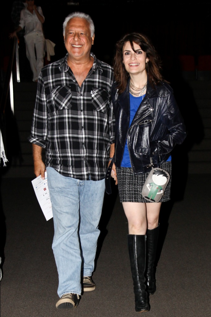 Todo radiante, Antônio Fangudes foi assistir a uma peça em São Paulo, de mãos dadas com a atriz Arieta Corrêa, que também estava muito sorridente.