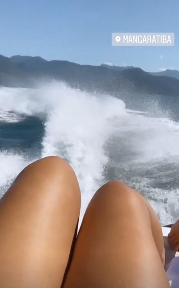 Nos demais stories, ela mostrou a curtição com as amigas durante passeio de barco na praia.