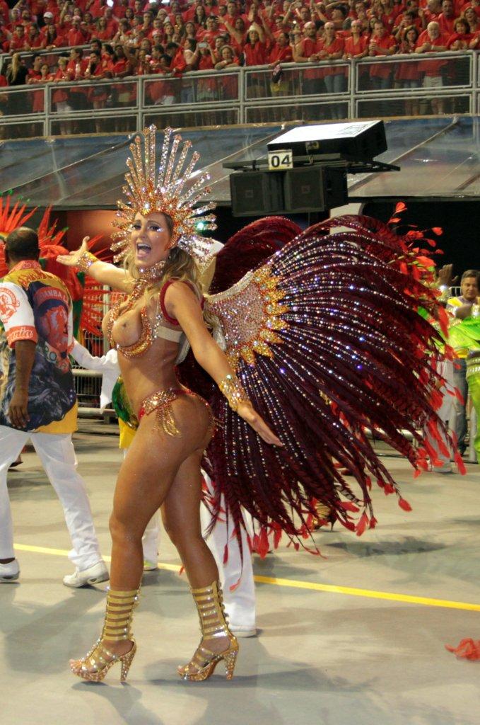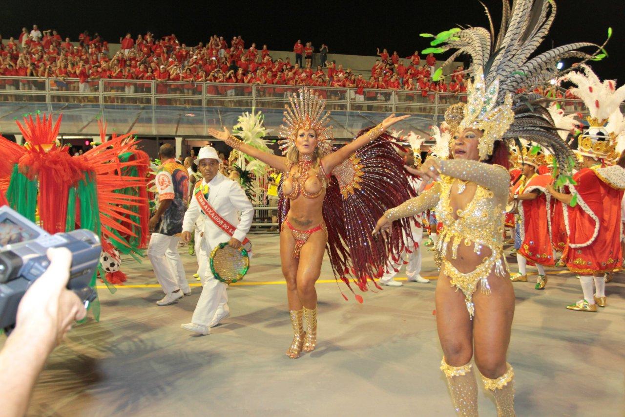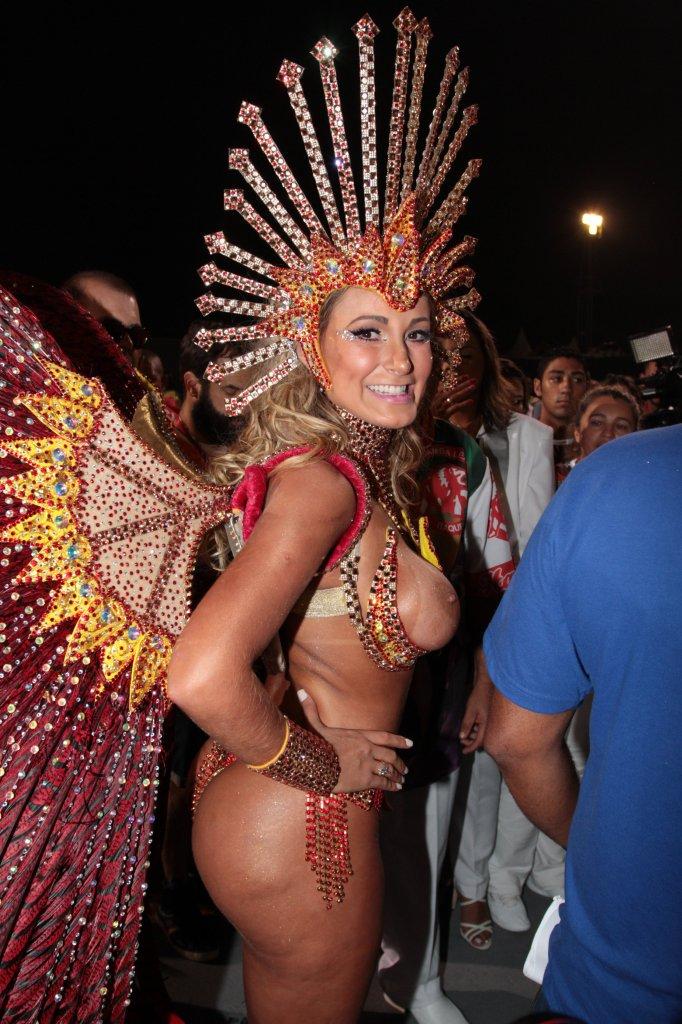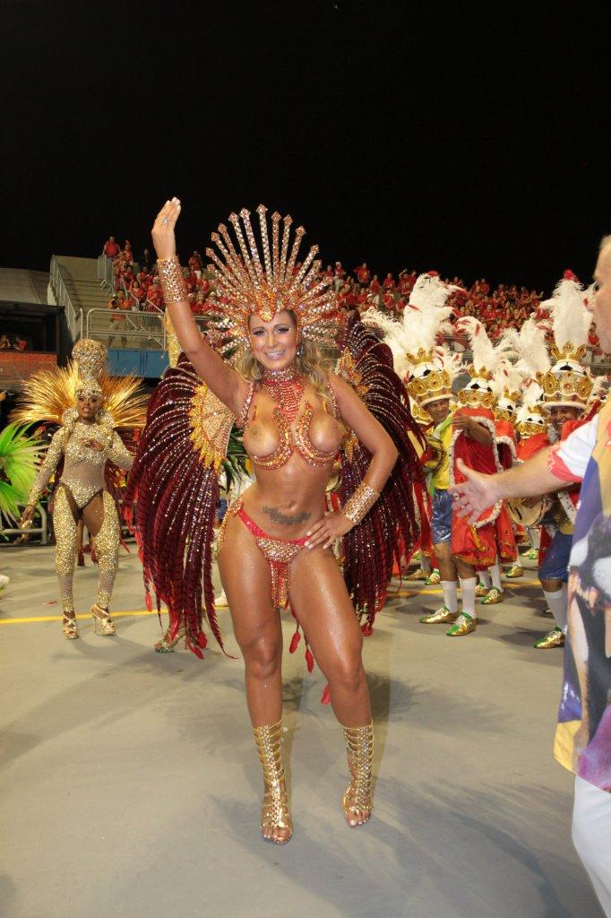 Andressa Urach soube roubar a atenção para si como Rainha de Bateria da Leandro de Itaquera, durante a noite da sexta-feira, no desfile das Escolas de Samba de São Paulo no Anhembi. Com uma fantasia vermelha cheia de pedras e penas, a loira vice-Miss Bumbum 2012 e ex-participante do programa 'A Fazenda' resolveu não usar nada para cobrir os seios e os deixou completamente à mostra. Confira.
