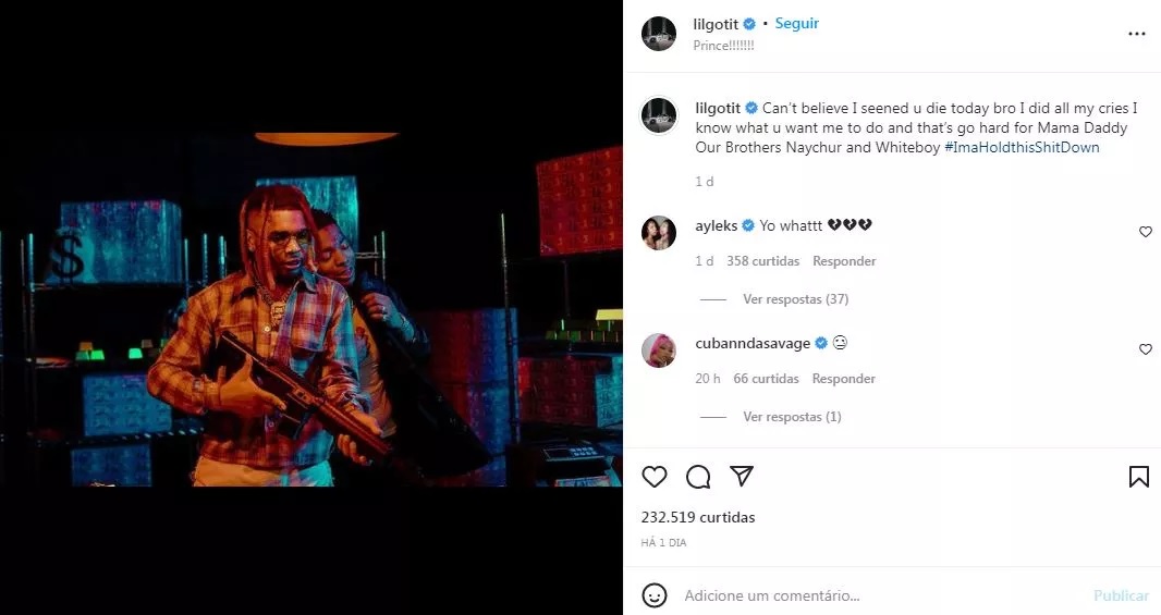 A morte, que ainda não teve causa revelada, aconteceu na sexta-feira (13). O irmão dele, o rapper Lil Gotit, afirmou que viu a morte do irmão: