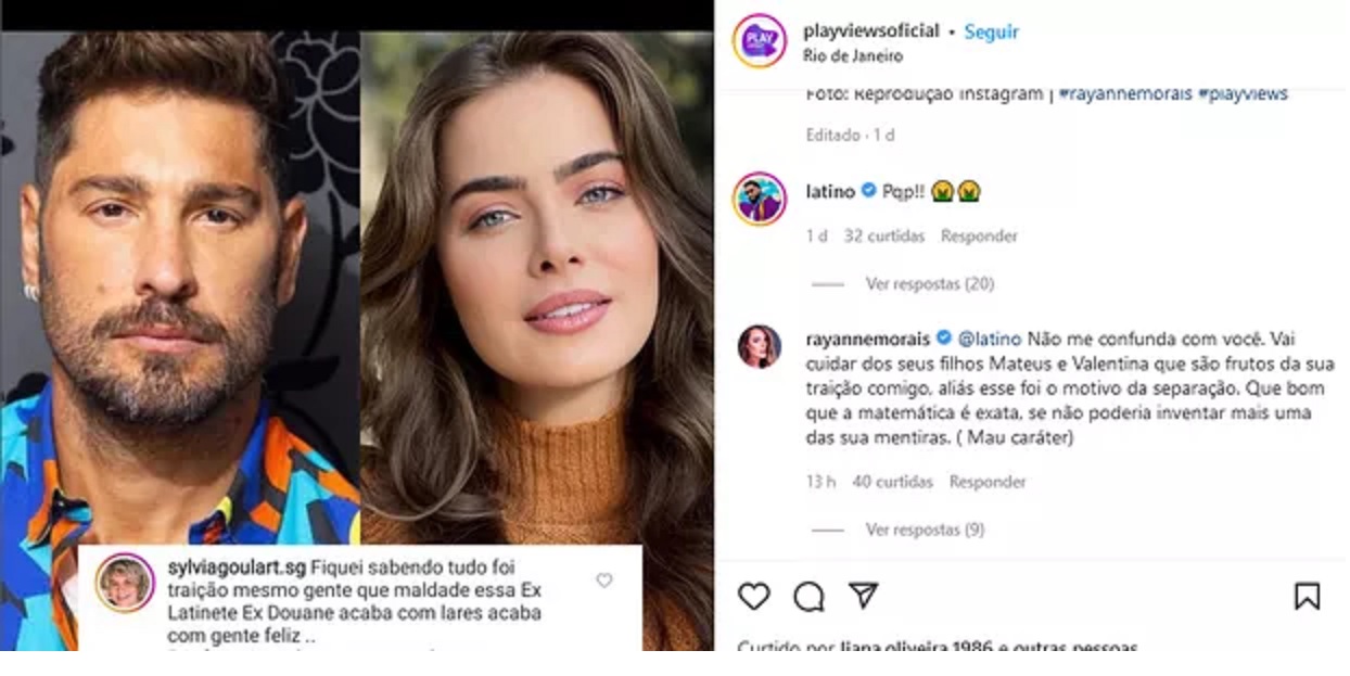 Tudo começou quando Latino provocou a ex no Instagram, reagindo com um palavrão e emojis de vômito a um comentário de uma internauta sobre o envolvimento de Rayanne com Victor Pecoraro, enquanto ele estava casado com Renata Muller, mãe de suas filhas do ator. "Fiquei sabendo tudo, foi traição mesmo, gente. Que maldade essa ex-Latinete, acaba com lares e com gente feliz", acusou a internauta que foi apoiada por Latino.