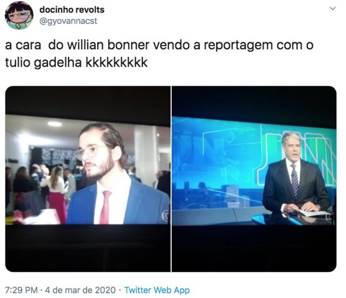 No Twitter, o nome de William Bonner subiu aos Trending Topics (assuntos mais comentados), com internautas 'zoando' a situação e principalmente comentando a reação e expressões que o âncora fez quando a câmera cortou de volta para ele. Confira abaixo alguns dos comentários: