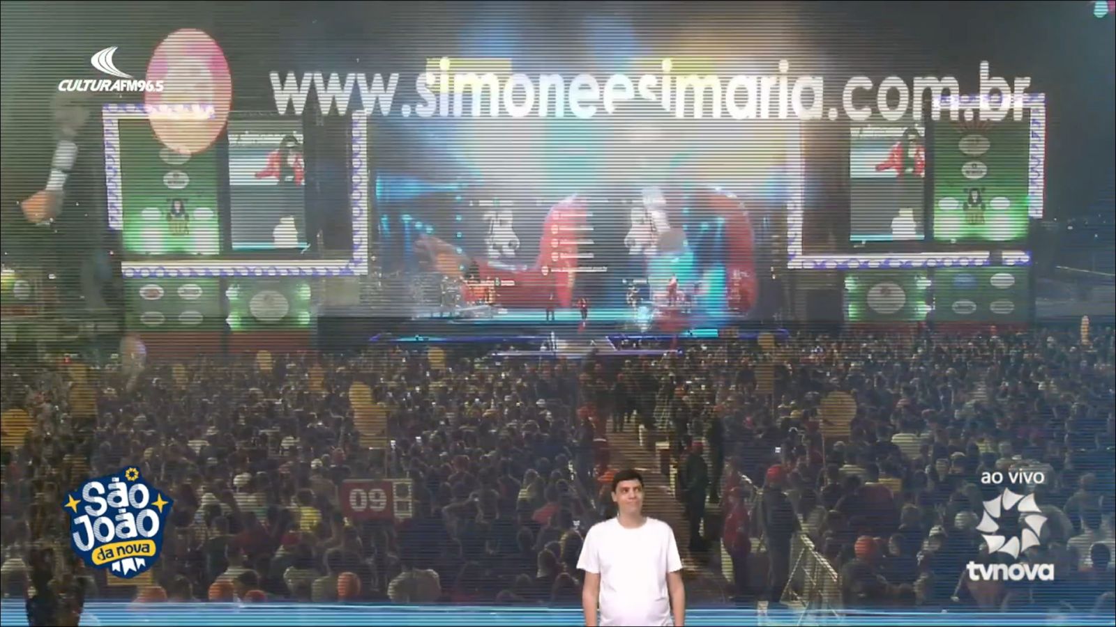 Ele ficou visivelmente sem reação ao ver Simaria chegando ao palco faltando apenas 12 minutos para o show acabar, após Simone ter cantado todas as músicas sozinha. Por alguns instantes, o intérprete até parou de traduzir o que a 'coleguinha' dizia e pareceu atônito com a situação.