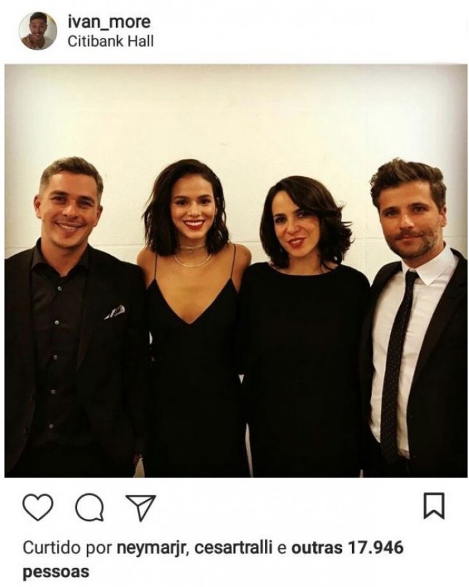 Ivan encheu a atriz de elogios e mandou um recado para Neymar. “Preciso dizer que essa Morena linda, de vestido preto e Baton vermelho é a mulher da minha vida! Demorei muito pra tentar conquista-la. Foi difícil, mas consegui. Hoje é o níver dela. E como eu a amo! *** Bruna Marquezine vc não foi feita pra mim! Neymar vc vai nessa, vc é o cara e tá bem na fita cumpadi! Ajuda ele BagaBoy”, escreveu ele marcando os amigos do jogador.