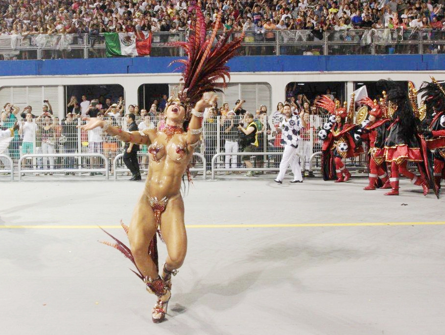 Fabiana Frota mostrou o resultado de toda a sua dedicação à malhação pesada durante o desfile da Gaviões da Fiel que aconteceu no segundo dia dos desfiles das escolas de samba de São Paulo, no Anhembi. A mulher de Alexandre Frota saiu como destaque da agremiação, que contou com Sabrina Sato como musa e Tatiane Minearto como Rainha de Bateria. Durante o samba, Fabi foi lembrada por ter o físico bem parecido com o de Gracyanne Barbosa. Confira.