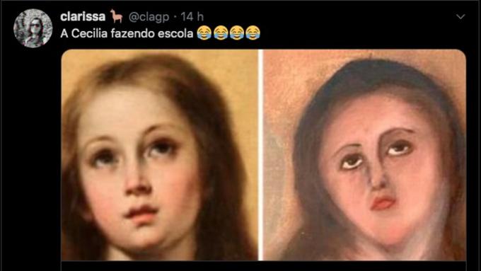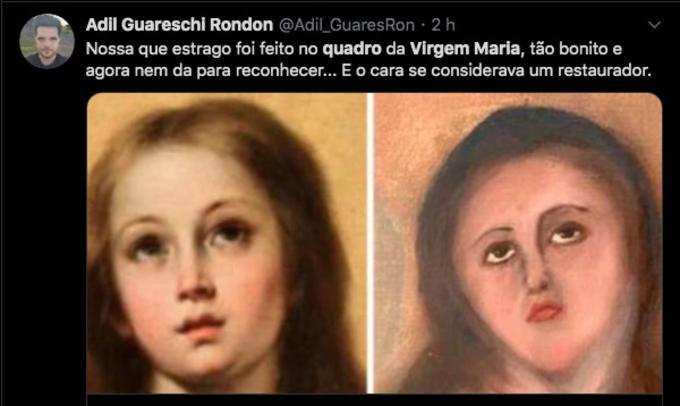 O quadro representando a Virgem Maria, do artista barroco espanhol Bartolomé Esteban Murillo, virou piada na web após uma tentativa de restauração o deixar deformado.