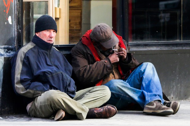 Richard Gere está interpretando um mendigo em seu mais recente filme “Time Out of Mind”, mas acabou sendo confundido com um mendigo de verdade enquanto gravava em nova York e chegou a receber um prato de comida de uma mulher que não o reconheceu.