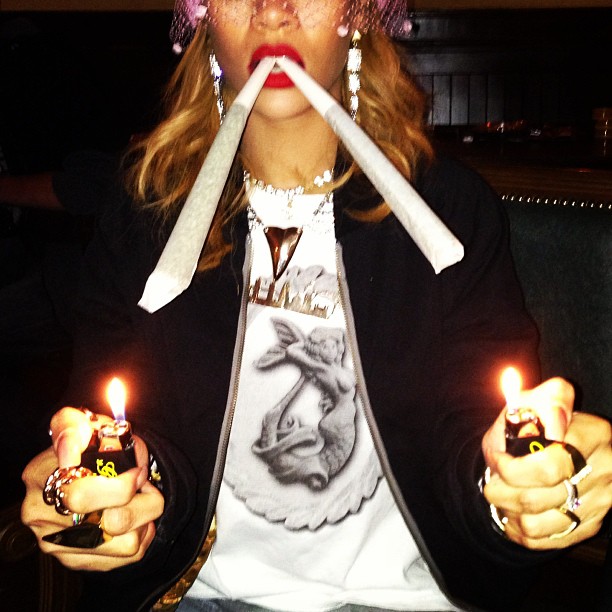Rihanna não é de economizar nas polêmicas, e nunca escondeu que fuma o 'cigarrinho suspeito', publicando várias fotos no Instagram.