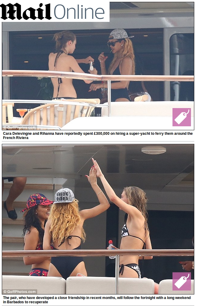Ao jornal britânico Daily Mail, uma fonte contou sobre os planos das celebridades, que pretendem seguir para Barbados, país onde Rihanna nasceu “Vai ser sem limites essa viagem. Elas vão gastar ainda mais mais com outro iate, além de irem aos melhores clubes e restaurantes. Será bebedeira sem parar e elas já estão dizendo que não vão dormir muito. Talvez duas horas por noite”.
