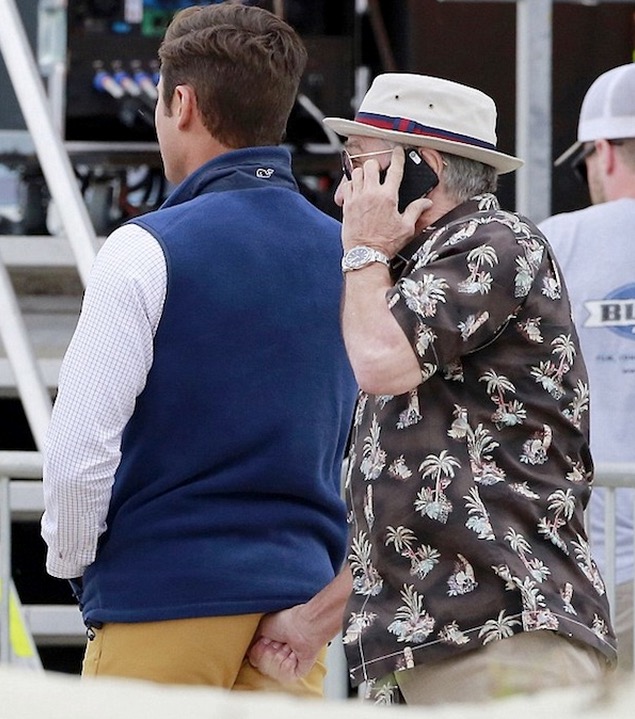 Nos bastidores das gravações do filme “Dirty Grandpa”, fotógrafos registraram o momento em que o ator Robert De Niro coloca com vontade sua mão nas partes íntimas de Zac Efron, estrela do filme High School Musical.