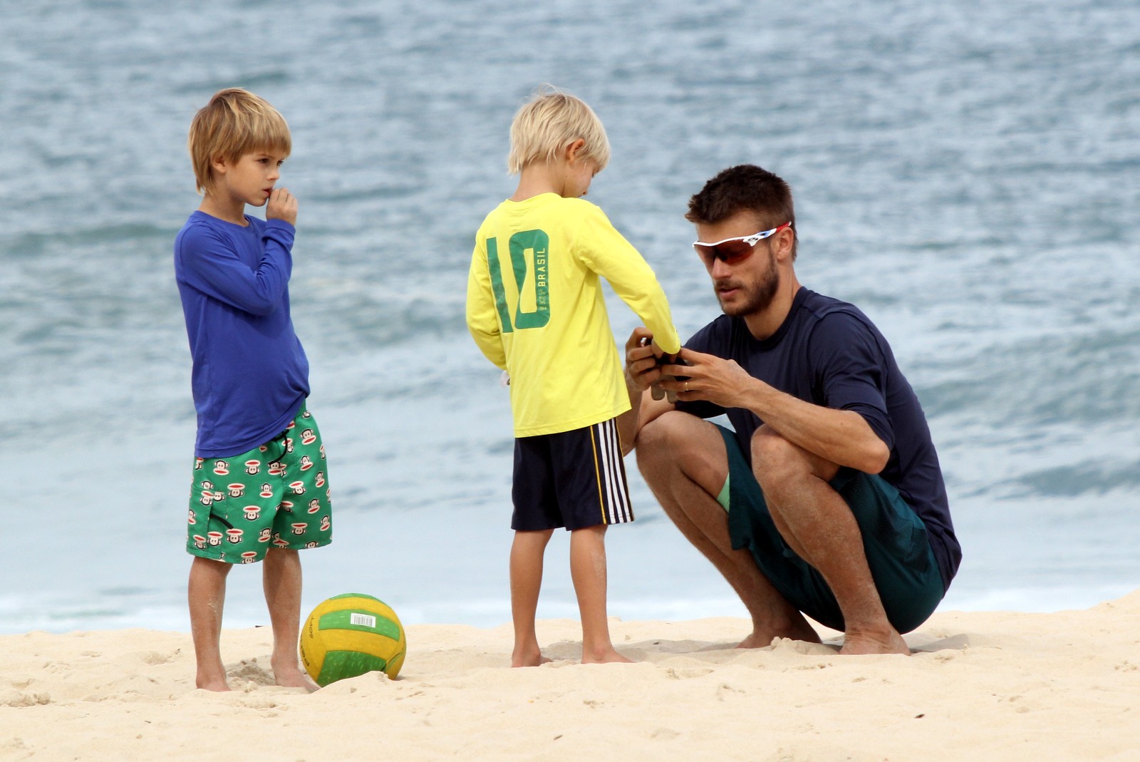 E este domingo, 10, ele aproveitou para passar ao lado dos filhotes, os gêmeos João e Joaquim, e de Fernanda Lima, onde eles mais gostam: na praia, que é bem pertinho de onde moram, no Leblon, no Rio de Janeiro.