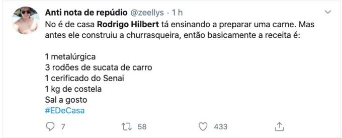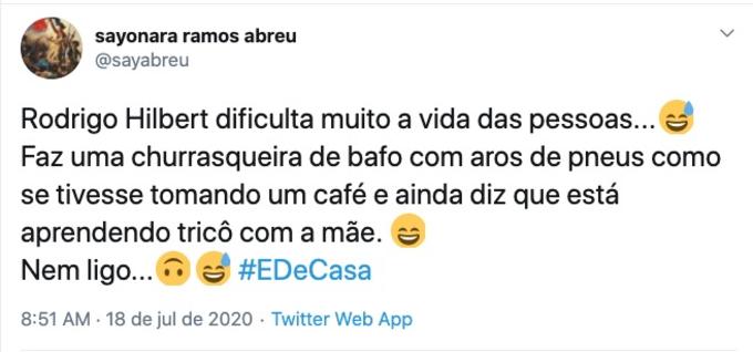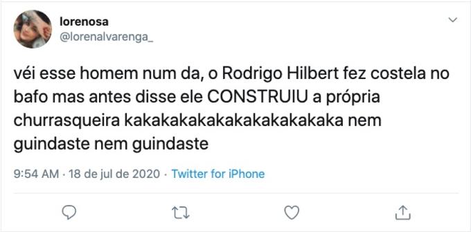 O que chamou a atenção dos internautas foi o fato do galã construir uma churrasqueira. Confira as reações: