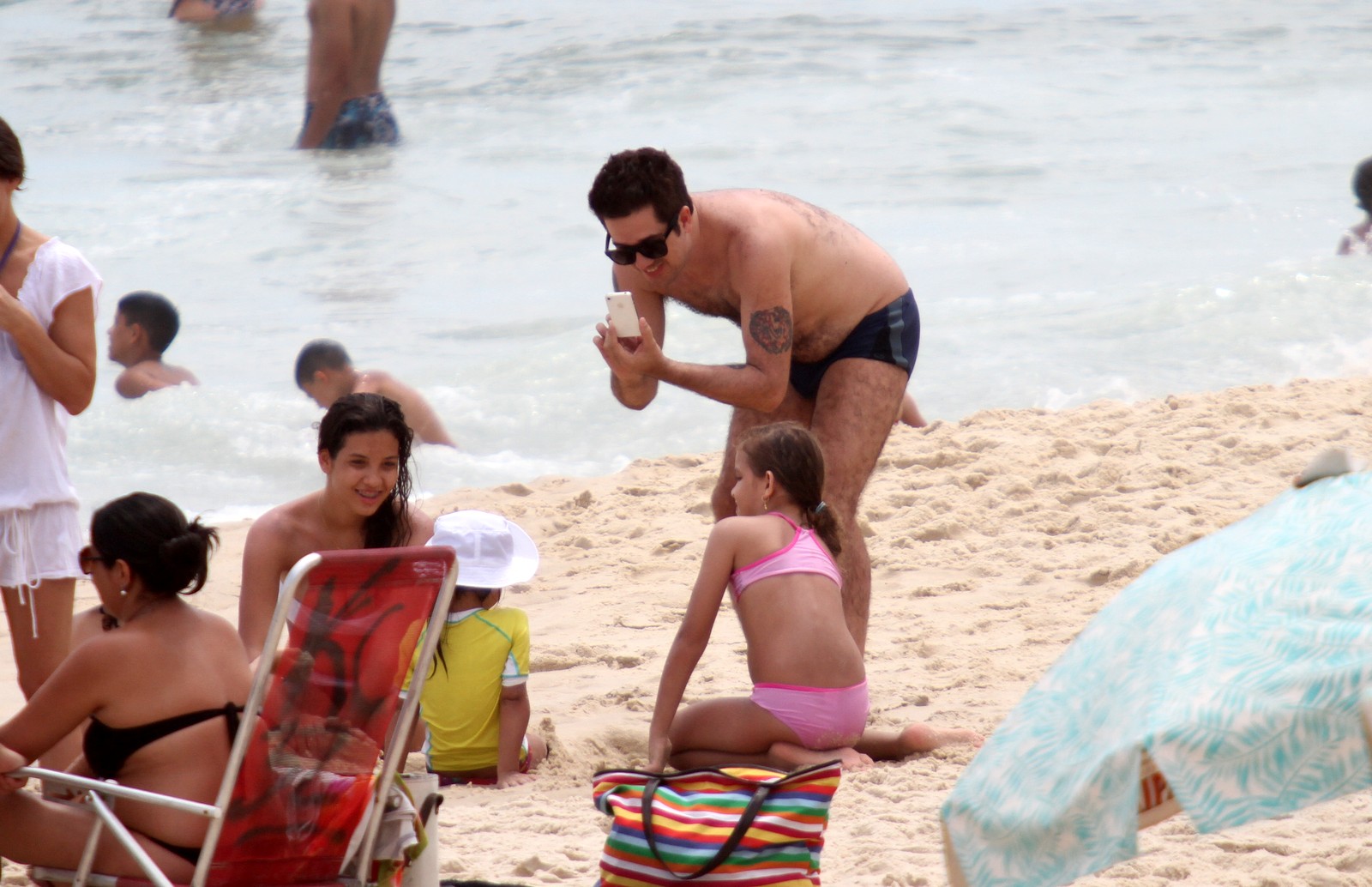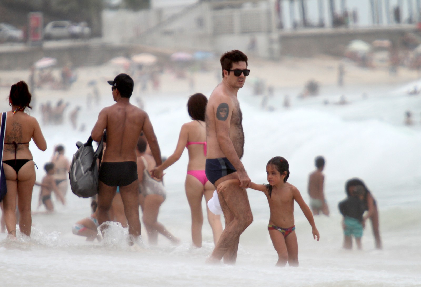 Vocalista do Jota Quest, Rogério Flausino namorou muito na tarde desta quinta-feira (17), com sua esposa, Ludmila Carvalho. O casal também levou a filha, Nina, para brincar na praia de Ipanema, localizada na Zona Sul da capital carioca.