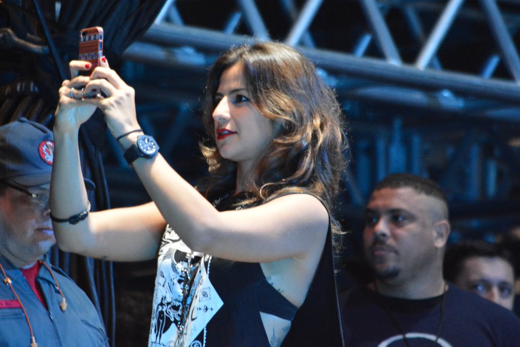 Ronaldo aproveitou a noite de muito metal que rolou no Estádio do Morumbi, em São Paulo, para curtir a noite de sábado ao lado da namorada, a DJ e empresária Paula Morais. Com um look "rocker" todo de preto, o casal curtiu o show da banda americana Metallica.