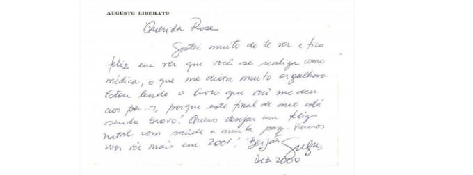 Rose mostrou também uma carta escrita pelo apresentador para ela: "Querida Rose, gostei muito de te ver e fico feliz em ver que você se realiza como médica, o que me deixa muito orgulhoso. Estou lendo o livro que você me deu, aos poucos, porque este final de ano está sendo bravo! Quero desejar um feliz Natal com saúde e muita paz. Vamos nos ver mais em 2001! Beijão, Gugu”.