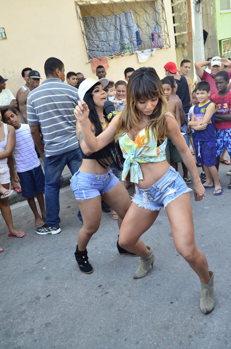 Durante as gravações do programa Pânico na Band, que aconteceram nesta sexta-feira (12), no Complexo do Alemão, Sabrina Sato entrou no ritmo do funk carioca e usou um top e modelito curtíssimo de short enquanto rebolava.