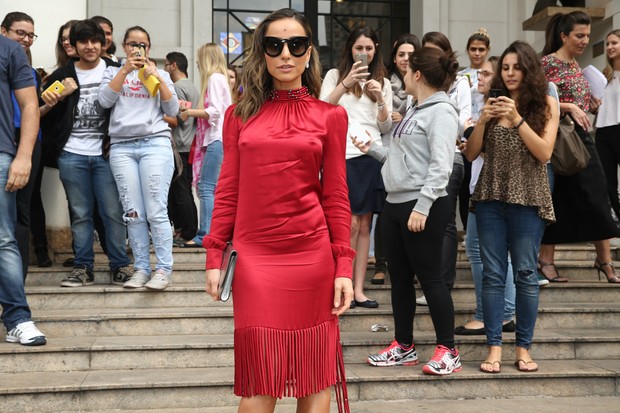 Sabrina Sato roubou todas as atenções ao chegar no desfile do Reinaldo Lourenço no São Paulo Fashion Week, nesta quinta-feira, 15. A apresentadora dispensou sutiã e chamou atenção pelo 'farol aceso'. Sabrina escolheu um vestido vermelho com franjas e decote nas costas. Simpática, ela tirou foto com fãs que estavam na porta do local.