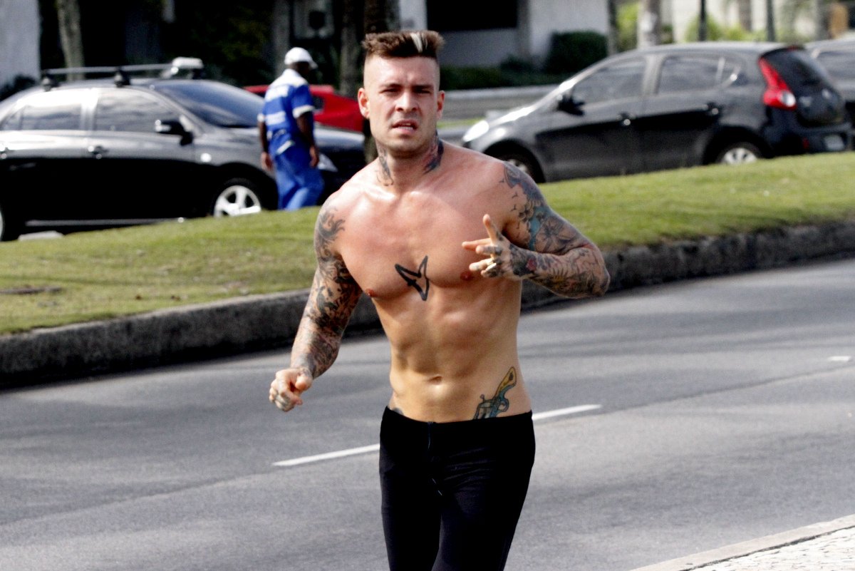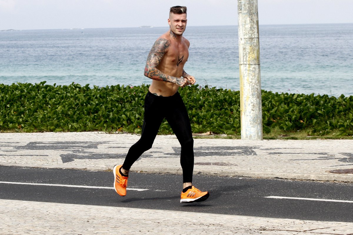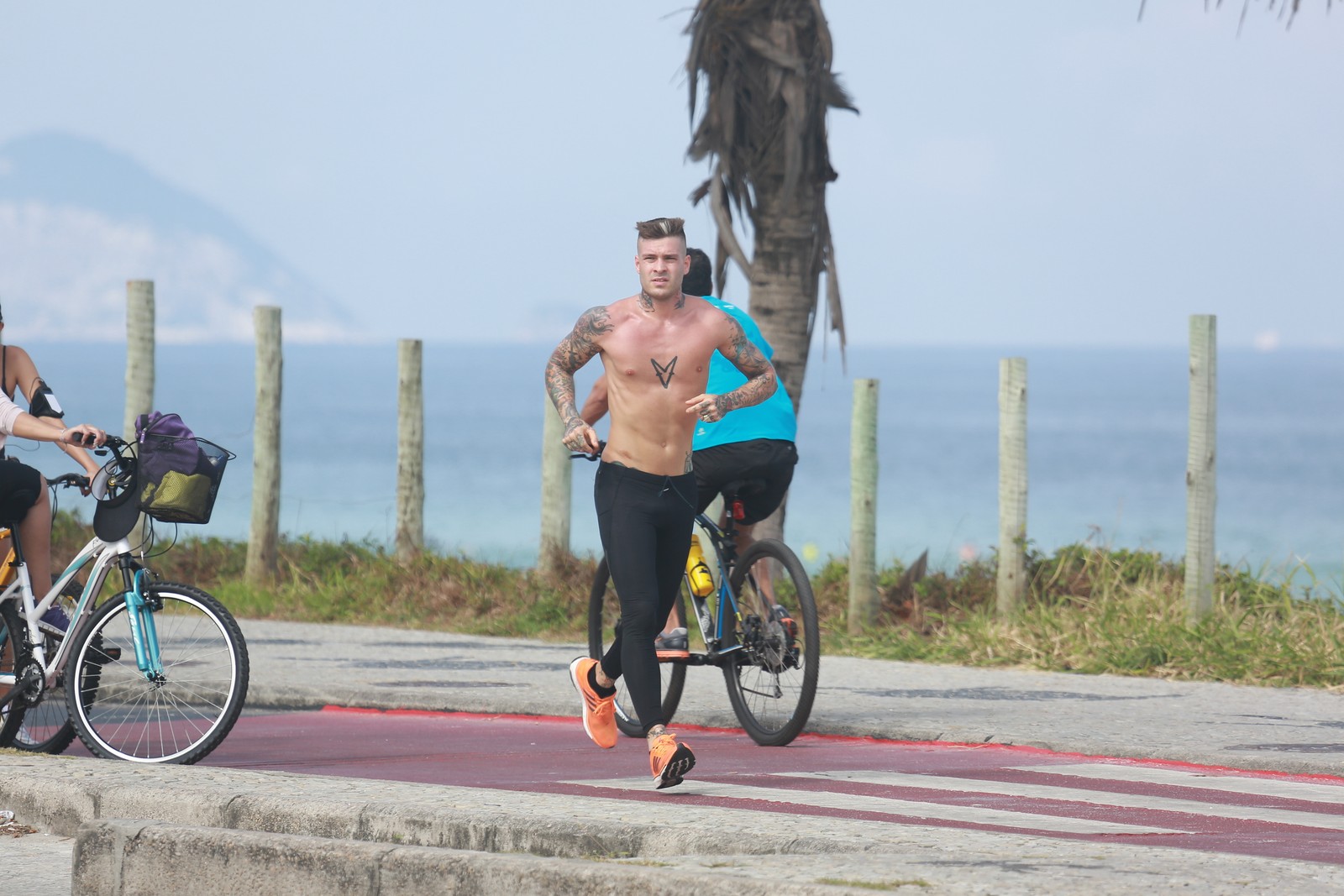 Mateus Verdelho resolveu tirar o sábado para manter a sua boa forma com uma corrida puxada na Barra da Tijuca, no Rio de Janeiro. O Dj, modelo internacional e ex-participante do reality show a "Fazenda", que chegou a namorar a vencedora do programa Bárbara Evans, exibiu suas tatuagens e barriga sarada enquanto se exercitava sem camisa.