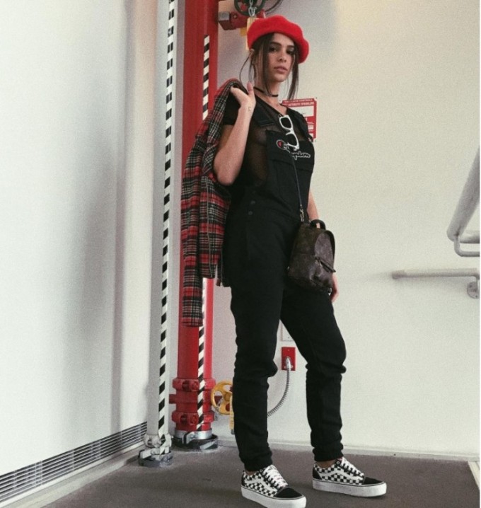 A atriz apostou em um blusa transparente e posou sem sutiã cobrindo parte dos seios com a macaquinha. Cheia de estilo, Marquezine arrancou elogios dos seguidores.