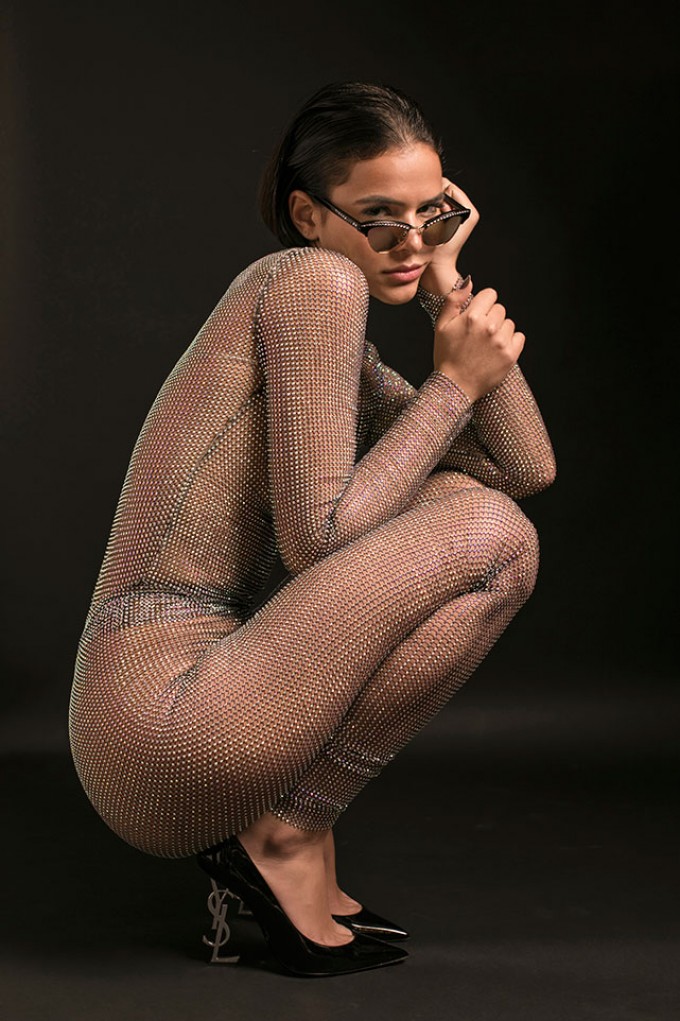 Cheia de atitude, a atriz surgiu no melhor estilo 'estrela gringa' usando um macacão completamente transparente da Gucci, avaliado em mais de R$ 25 mil e que já foi usado por ninguém menos que Rihanna e Kim Kardashian.