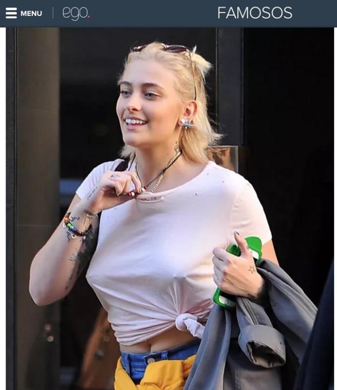 Paris Jackson foi clicada em Paris, na França, nesta terça-feira, 17, e resolveu dispensar o sutiã, deixando à mostra os piercings que tem nos mamilos.