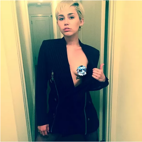 Polemizar está entre as preferências de Miley Cyrus. Na madrugada desta quinta-feira, 16, não foi diferente. Em seu perfil no Instagram, a cantora postou fotos em que aparece exibindo um dos seios. Nas imagens “censuradas”, Miley aparece sem sutiã e com uma de suas tatuagens a mostra.