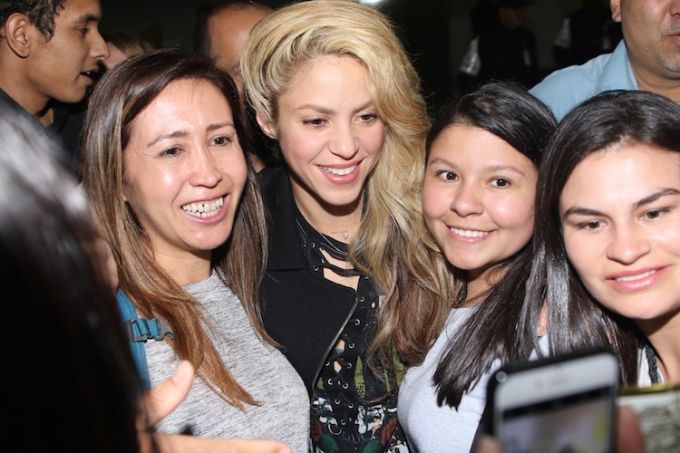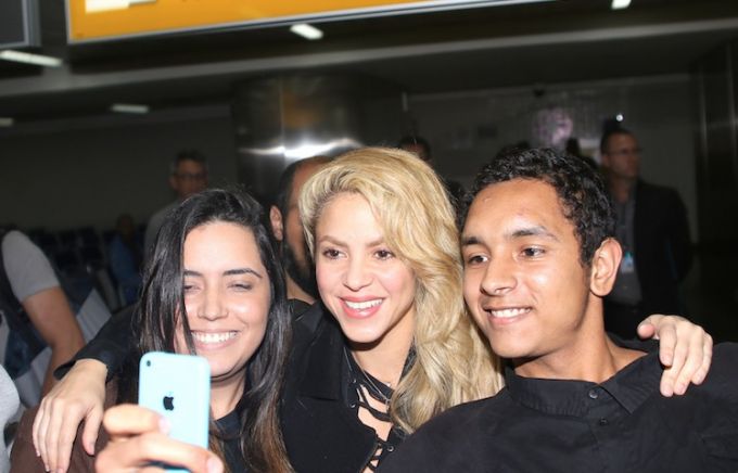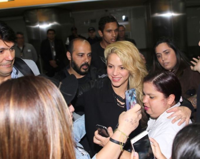 Shakira desembarcou no Brasil na madrugada desta terça-feira (6). Sorridente, a cantora foi cercada por fãs e paparazzi.