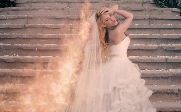 Lançamento oficial do novo albúm, Shakira divulgou mais um clipe, dessa vez da música ' Empire '. Com muita sensualidade, sua essência, a cantora aparece no vídeo vestida de noiva e desiste de um suposto casamento. Em uma das cenas, o véu de seu vestido branco pega fogo.