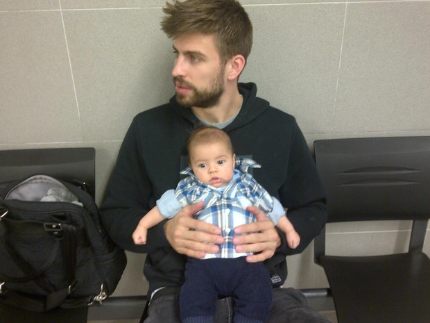 Momento fofura: Shakira mostrou um momento da sua pequena família, formada pelo marido Gerard Piqué, jogador do Barcelona, e o filho do casal, Milan.