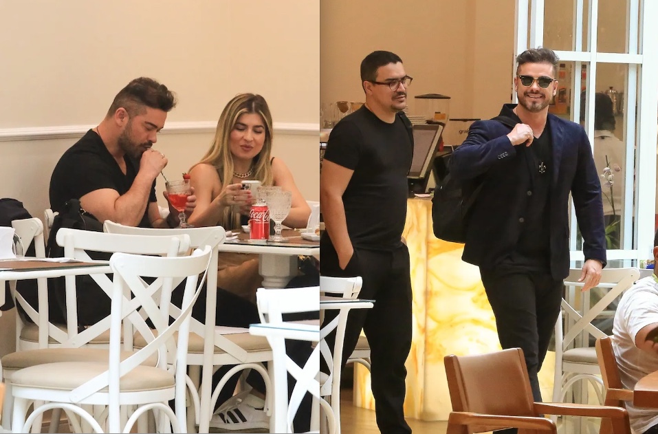 Usando óculos escuros, o ator circulou pelo local com um semblante sorridente e parou para comer em um restaurante com os amigos.