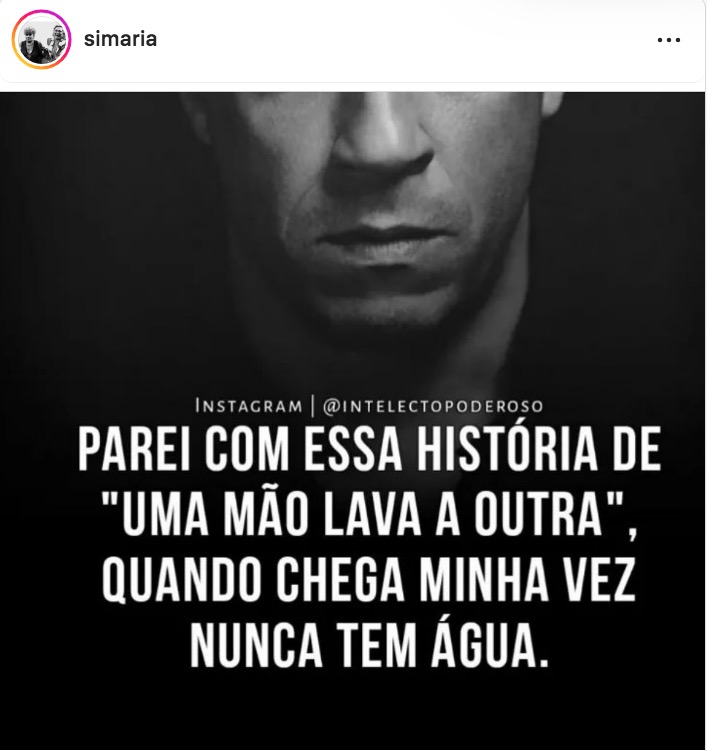 “Parei com essa história de ‘uma mão lava a outra’, quando chega minha vez nunca tem água”, escreveu a cantora.